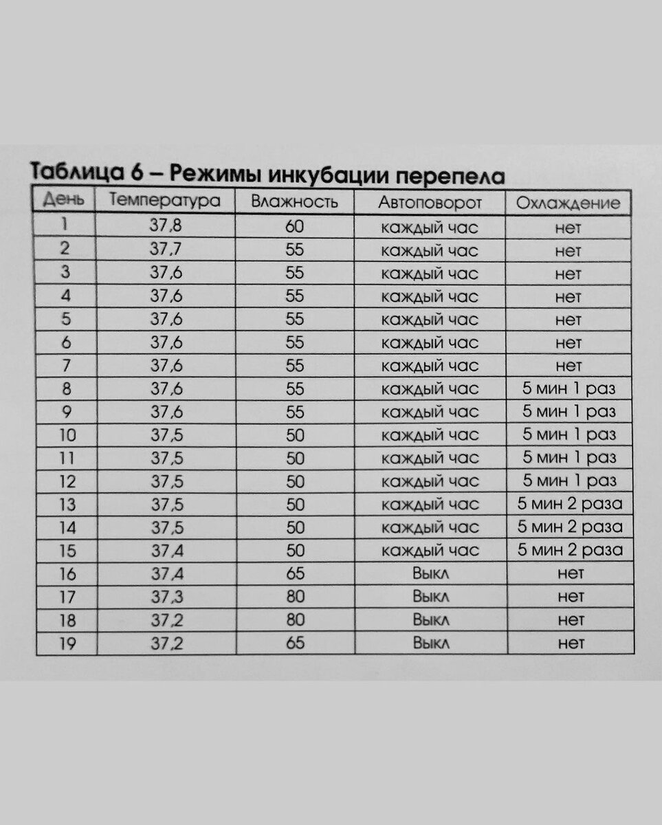 Режим инкубации куриных яиц таблица